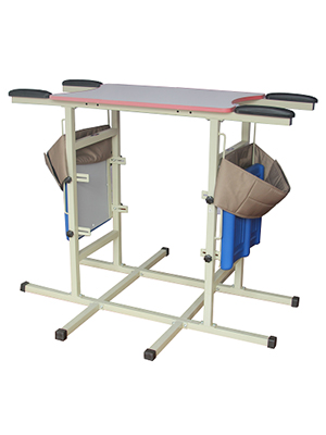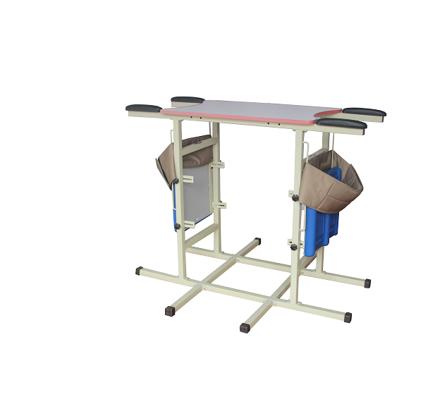 型號:P-SZL-D 名稱:雙人站立架 規格:115*89*95-120cm 用途:截癱、腦癱等站立功能障礙患者站立訓練,也可預防改善骨質疏松、壓瘡、心肺功能降低等